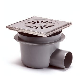 Afvoerput met rvs rand & rooster abs/rvs 316 verticaal verstelb 200x200mm za 75mm 1,30l/s 3kN