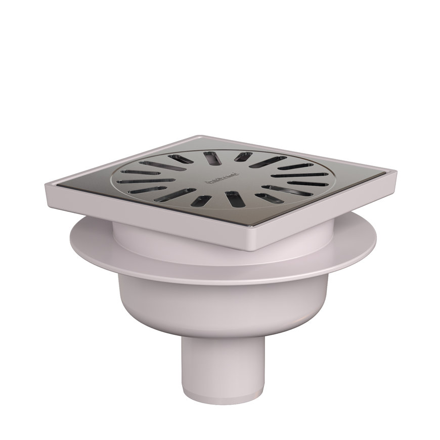 Aquaberg afvoerput met rvs rooster abs/rvs 304 niet verstelbaar 200 x 200 mm oa 75 mm 1,5 kN