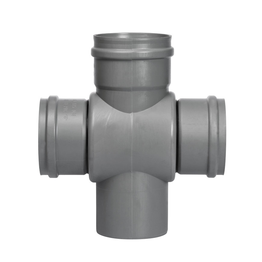 Nicoll dubbel T-stuk 88° pvc 3x manchet/1x spie grijs 110 mm