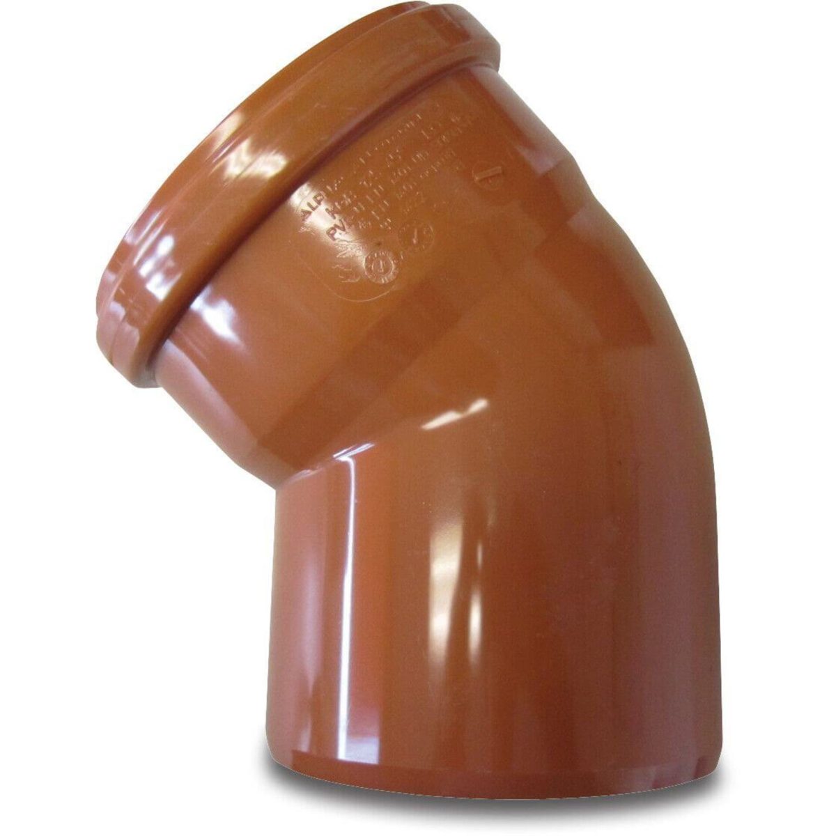 Hieronder vindt u alle technische specificaties van de Bocht 45° PVC-U 500 mm SN4 manchet x spie roodbruin | Aantal 1PCS:
