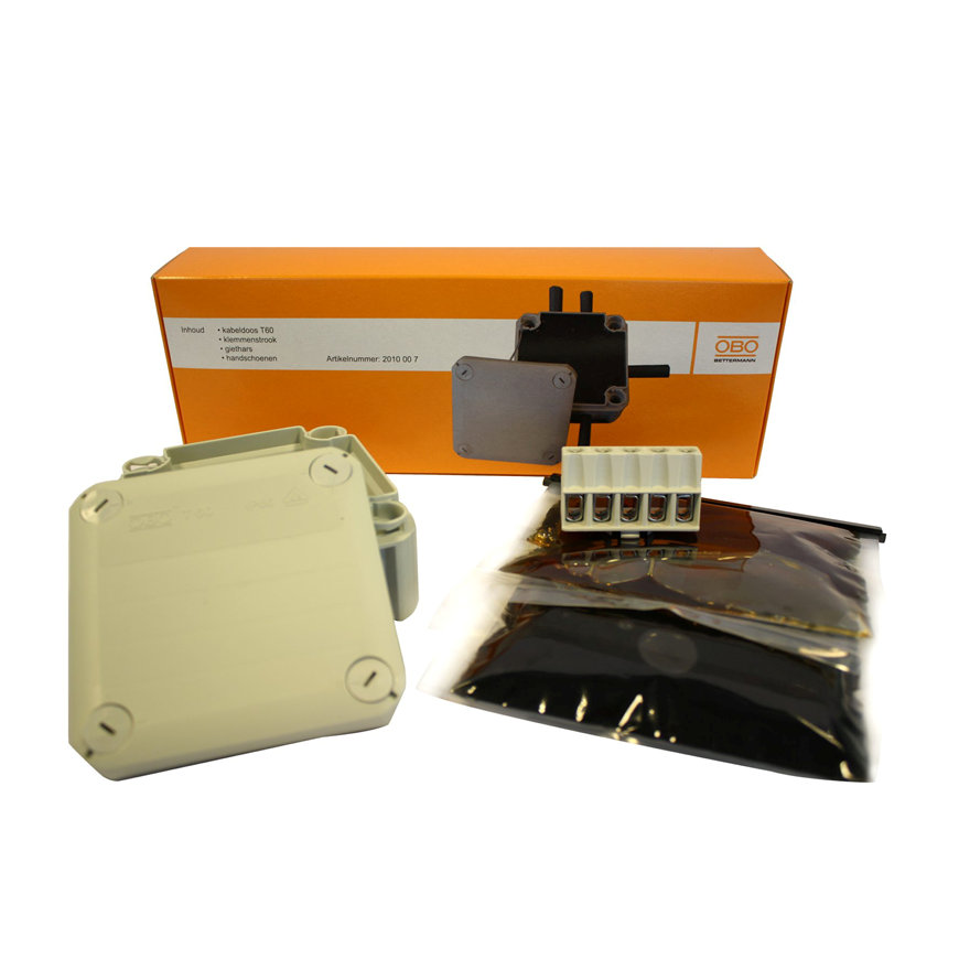 OBO kabeldoos incl. klemmenstrook giethars handschoenen