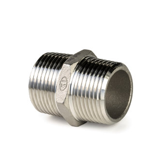 Dubbele nippel 6-kant rvs 316L lost wax 2x buitendraad BSP 2
