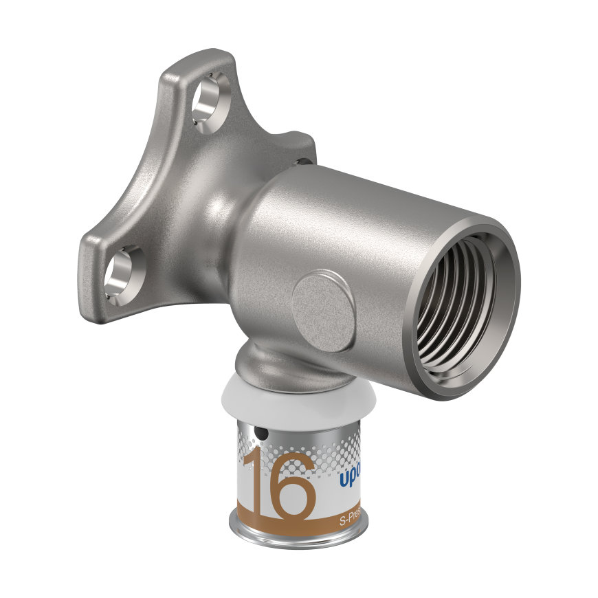 Uponor muurplaat S-Press Plus messing vertind binnendraad x pers lang model Kiwa ½ x 20 mm