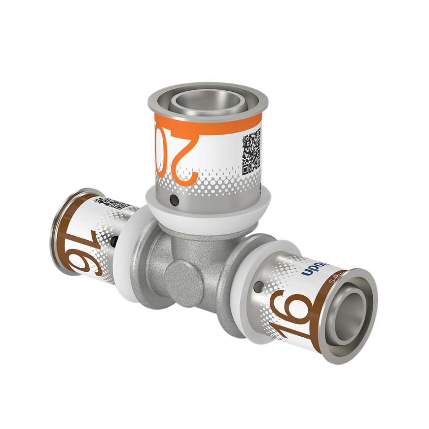 Uponor verloop T-stuk 90° S-Press Plus messing vertind 3x pers Kiwa 25 x 20 x 16 mm