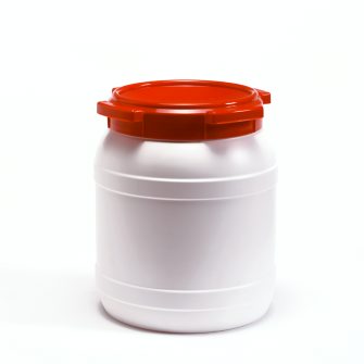 Wijdmonds vloeistofvat met schroefdeksel zonder handgrepen wit/rood 26 liter