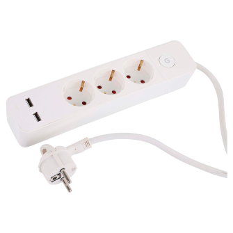 Q-Link stekkerdoos met randaarde en schakelaar wit 3-v 1,5 m snoer 3x 1,5 mm² pvc USB A