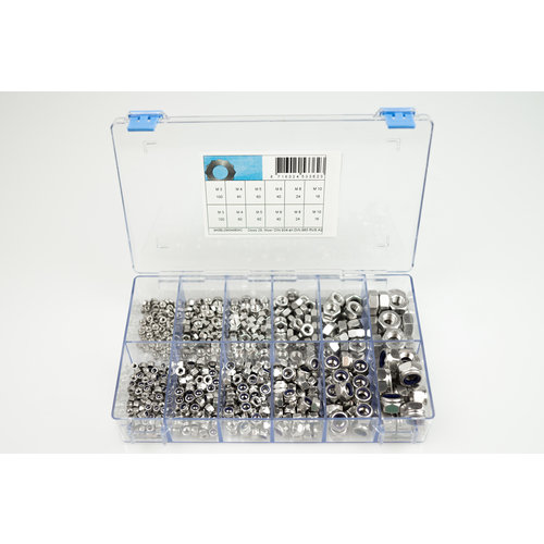 Assortimentsdoos Zeskantmoer DIN 934 en DIN 985 Rvs A2